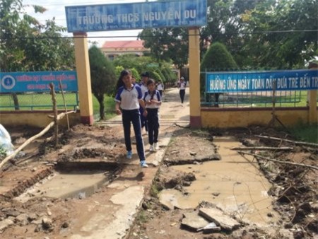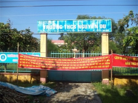 Thế nhưng, đó không còn là niềm vui, sự phấn khởi, háo hức nữa mà thay vào đó là sự tuyệt vọng, lo lắng với những sự việc xảy ra trước mắt. Tình trạng trường bị đóng cửa đã diễn ra suốt gần 2 năm. Cùng với đó là những biển hiệu, logo được treo lên nói về vụ việc tranh chấp đất giữa địa phương và một hộ dân khác. Những hàng rào đã được giăng lên cổng trường và hơn thế nữa là một cái hố to đùng xuất hiện ngay trước cổng ra vào. Biểu tượng Trường Trung học cơ sở Nguyễn Du dần như đang bị đe dọa. Đây là điều mà ai trong chúng ta cũng không mong muốn, nhất là các bạn học sinh đã và đang còn ngồi trong ghế nhà trường. Chúng ta có thể dễ dàng bắt gặp sự lo âu, buồn bã của thầy cô và các bạn qua vẻ mặt. Sự việc này không đơn thuần là thiệt hại tài sản, vật chất mà hậu quả đáng lo ngại hơn chính là gây ảnh hưởng rất lớn đến chất lượng học tập của các bạn học sinh. Nếu tình trạng này cứ tiếp diễn thì hậu quả để lại là vô cùng nghiêm trọng và khó lường. Tương lai của các bạn rồi sẽ ra sao? Điều nhờ vào quá trình học tập và giảng dạy, nhưng nếu không có được môi trường thích hợp và điều kiện học tập tốt thì kết quả sẽ như thế nào? Nó không mang lại hiệu quả như mong muốn mà có thể là mặt trái. Kiến thức không lúc nào cũng có sẵn mà ngược lại, nếu không được củng cố thì trở nên vô ích, nó sẽ trở thành một con sâu đục khoét vào trí não, đầu óc. Điều đó cũng như tình cảnh “ngàn cân treo sợ tóc” của nhà trường và các bạn học sinh vậy.