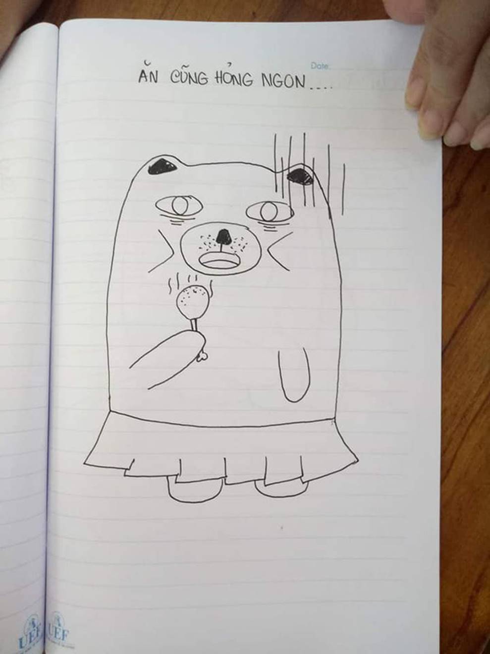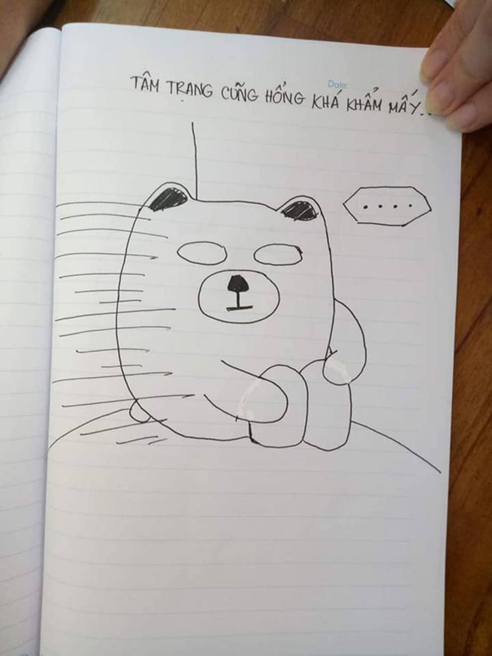 Nét vẽ đơn giản nhưng biểu cảm sinh động của chú gấu trong tranh khiến người xem phải thốt lên là "mủi lòng quá đi mất".
