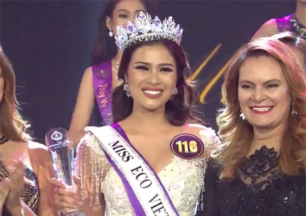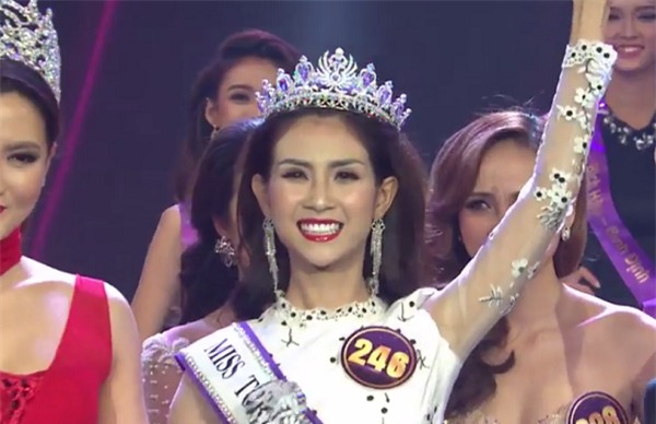 Khánh Ngân trong giây phút đăng quang Hoa khôi Du lịch Việt Nam 2017.