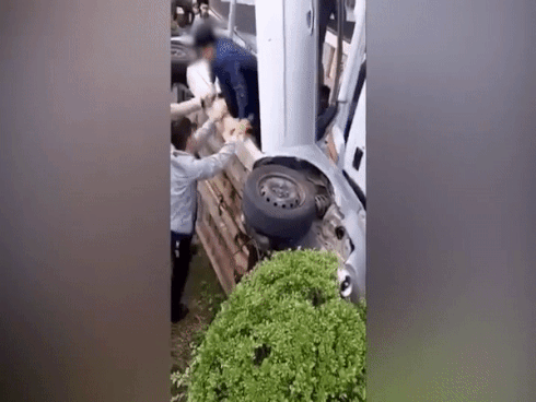 Trong lúc học lái xe xuống dốc, người phụ nữ bất ngờ lao thẳng ôtô xuống mương nước.