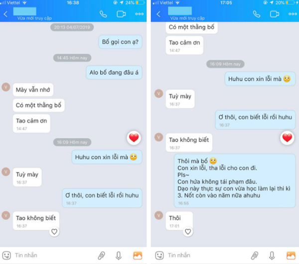 Cụ thể trong đoạn tin nhắn, ông bố đã đổi ngôi nói chuyện mạnh bạo hơn để thể hiến sự tức giận với đứa con gái rượu đã lâu không gọi điện quan tâm người cha gia này. Biết lỗi sai thuộc về mình, nữ sinh đã cật lực năng nỉ nhưng có vẻ tình hình vẫn chưa nguôi ngoai.