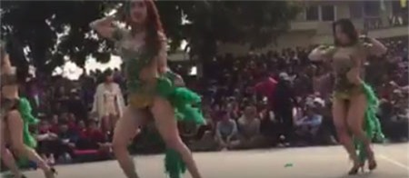 Đoạn clip ghi lại cảnh các vũ công ăn mặc sexy, nhảy bốc lửa phục vụ bà con trong làng đang nhận được nhiều sự quan tâm của cộng đồng mạng.
