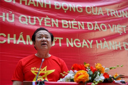 “Cùng với nhân dân cả nước chúng ta đấu tranh kiên trì, liên tục kiên quyết đòi Trung Quốc rút ngay rút hết vô điều kiện dàn khoan HD- 981 và toàn bộ tàu hộ tống ra khỏi vùng biển chủ quyền của Việt Nam. Hôm nay Hội Nghề cá Việt Nam tổ chức mít tinh để thể hiện tinh thần đó.” – tuyên bố trong buổi mít tinh của ông Trần Cao Mưu, Tổng thư ký hội Nghề cá Việt Nam. |