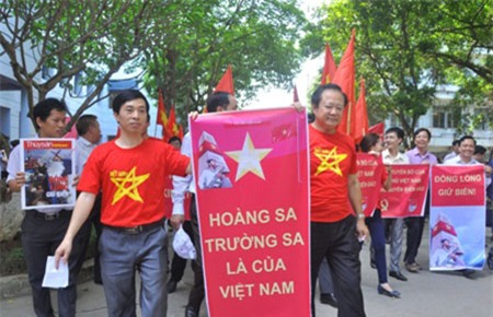 Lễ diễu hành của hội Nghề cá Việt Nam nhằm tuyên bố: “Yêu cầu Trung Quốc rút ngay và rút vô điều kiện khỏi vùng biển thuộc chủ quyền Việt Nam”. |