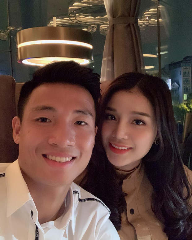 Trung vệ Bùi Tiến Dũng trong bức ảnh selfie cùng vợ
