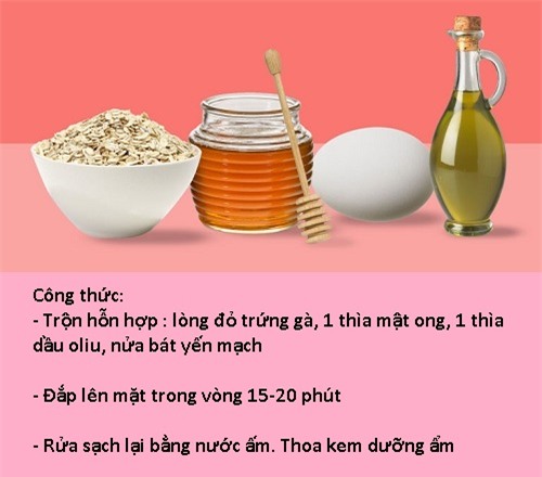 Hỗn hợp yến mạch, mật ong, dầu oliu, lòng đỏ trứng giàu hàm lượng protein, giúp kiềm dầu và phù phép cho làn da sáng bóng