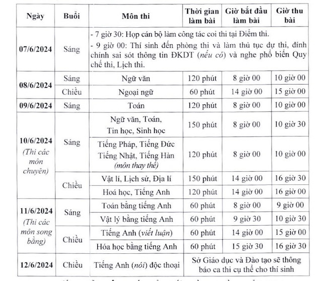 Kỳ thi tuyển sinh vào lớp 10 trung học phổ thông năm học 2024-2025 sẽ diễn ra vào ngày 8 và 9/6/2024 với 3 bài thi độc lập gồm Ngữ văn, Ngoại ngữ và Toán.