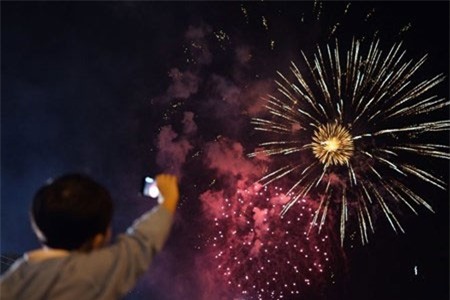 Màn bắn pháo hoa tầm cao diễn ra vào hồi 21h30 hôm nay (25.4) - tức mùng 7.3 năm Ất Mùi.