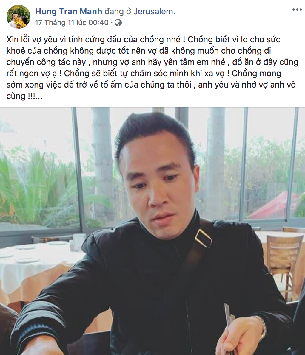 Mạnh Hùng không chỉ gửi lời xin lỗi mà còn liên tục nịnh vợ.