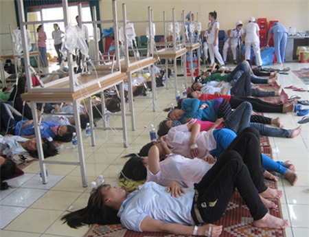Sau khi ăn cơm trưa gần nửa giờ, 110 công nhân ở Trà Vinh xuất hiện các triệu chứng đau đầu, chóng mặt rồi nôn ói.