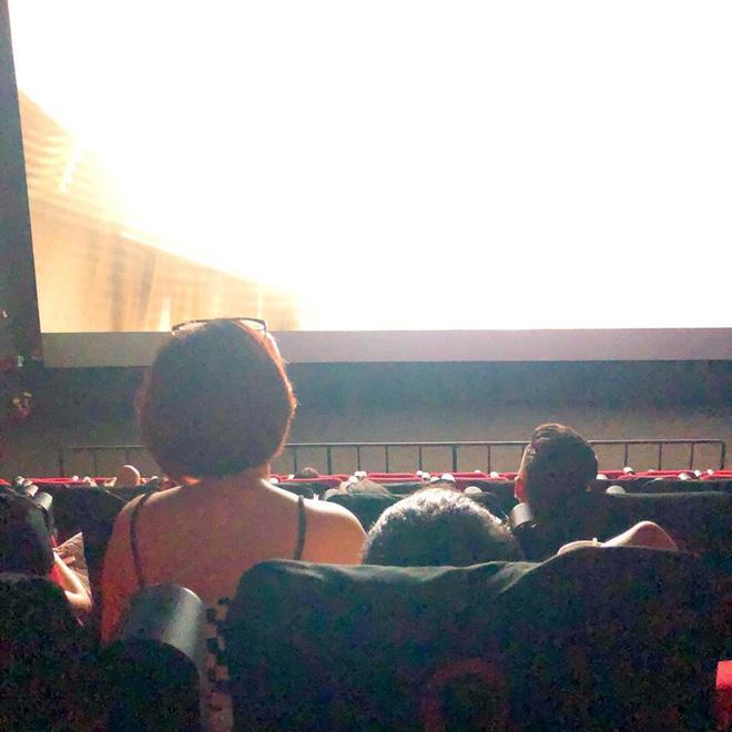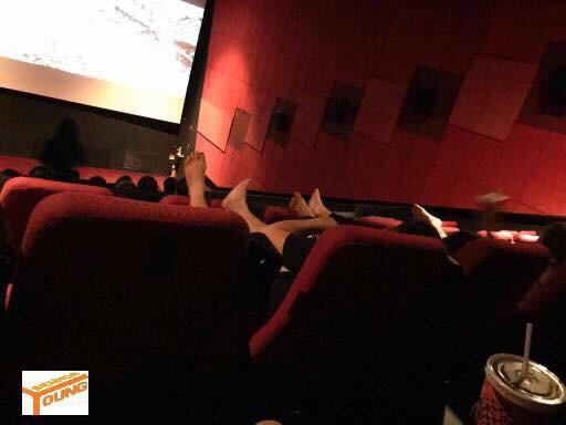 “Trần đời thấy bực nhất là mấy đôi mua hai vé xong ngồi lên đùi nhau như thế này. Nếu ôm ấp thì không nói nhưng ngồi cao như thế này thì ai còn xem phim được nữa. Thậm chí cặp này còn nằm lên đùi nhau cơ.