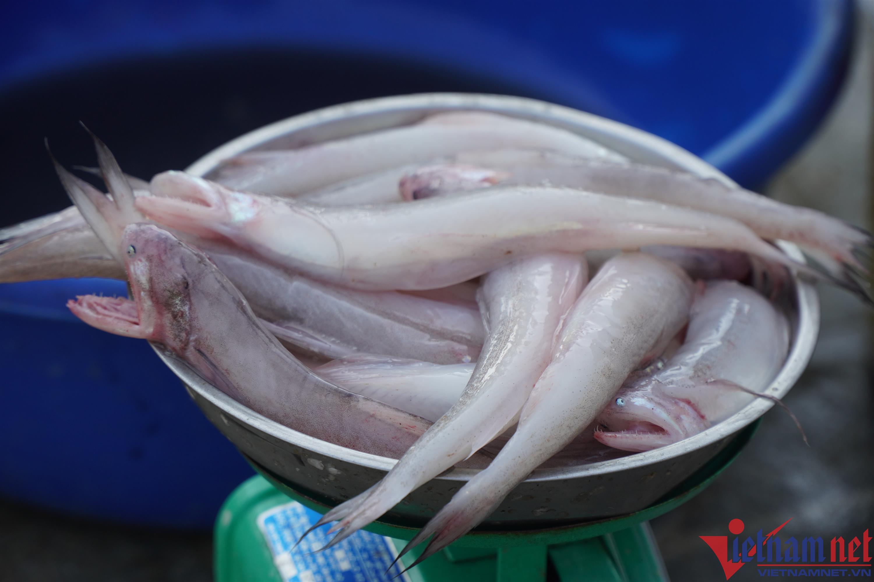 Những mớ cá khoai tươi rói vừa được đưa từ thuyền lên bờ.