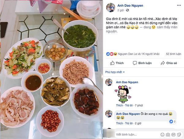 Bà xã Hồng Đăng thường xuyên khoe ảnh mâm cơm tự nấu trên mạng xã hội.