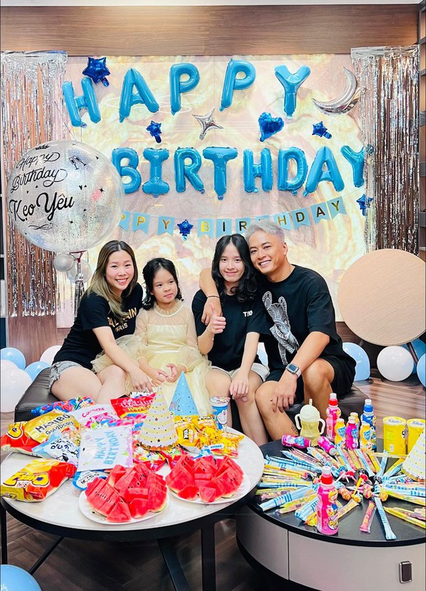 Vào tối ngày 12/7, Hồng Đăng đã chia sẻ khung ảnh cả gia đình cùng nhau đón sinh nhật con gái út. Có thể thấy, dù chỉ là bữa tiệc nhỏ được tổ chức tại gia, song cô bé vẫn được ba mẹ chiều chuộng bằng cách trang trí phòng ốc cầu kì và chuẩn bị đầy đủ đồ ăn thức uống.