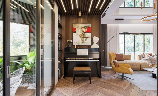 Phòng khách hoành tráng tiện nghi với nội thất hiện đại.