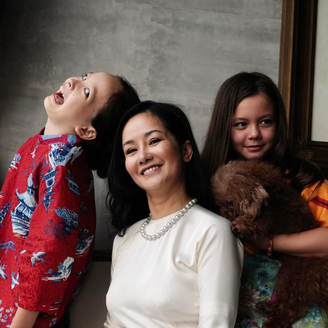 Đi kèm lời chúc là loạt ảnh quý báu của Tôm và Tép. Hai nhóc tì nay đã cao lớn phổng phao và thừa hưởng nét đẹp lai Tây khó cưỡng. Nếu nhóc Tôm vui vẻ và hài hước thì Tép lại ra dáng công chúa yêu kiều thùy mị trong những bức ảnh. Cả hai cùng mẹ mình trải qua những ngày tháng hạnh phúc và yên bình với vô số trải nghiệm thú vị ở khắp nơi.