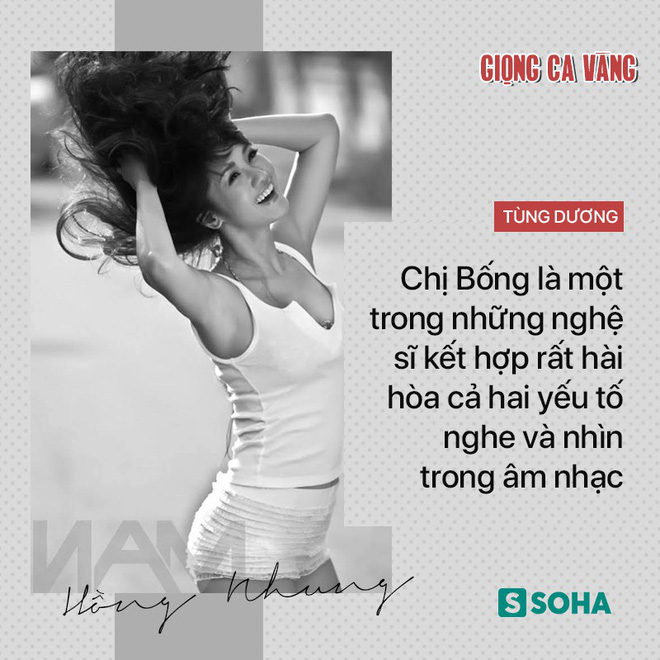Đến một người khó tính trong chuyên môn như Tùng Dương cũng phải thừa nhận: "Chị Bống là một trong những nghệ sĩ kết hợp rất hài hòa cả hai yếu tố nghe và nhìn trong âm nhạc. Vì vậy mà khi Hồng Nhung bước ra sân khấu, khán giả đều được mãn nhãn và mãn nhĩ, có cái để xem... để thưởng thức".