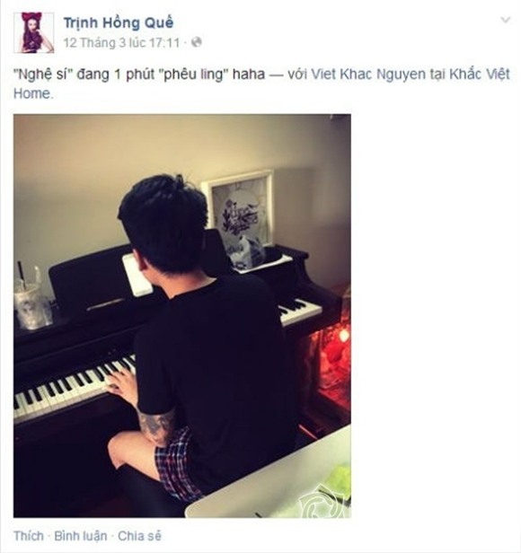 Fans hâm mộ bất ngờ tò mò với nghi án tình cảm của Hồng Quế và Khắc Việt, khi cô chia sẻ những hình ảnh tình cảm cùng nam ca sĩ “Yêu lại từ đầu” với nhiều dòng trạng thái thân mật. Cô viết: “Nhìn em gầy gò ốm yếu. Anh chăm cho em béo tốt như heo. Ngày nào cũng đủ 3 bữa, mỗi bữa 3 bát cơm. Haha”.
