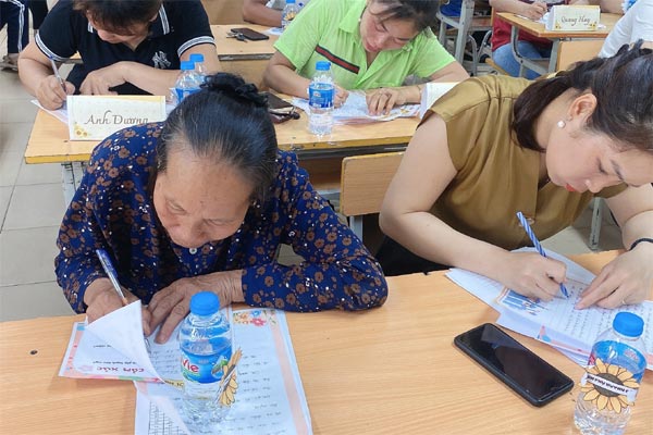 Mẹ cười hạnh phúc khi đọc những dòng thư đầy tình cảm của cậu con trai bé bỏng. (Ảnh: Trường liên cấp Dạ Hợp).