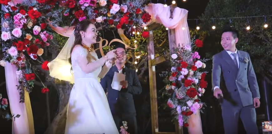Có lẽ họ đã cùng trải qua những giai đoạn khó khăn đến thế nào mới đứng được bên nhau ngày hôm nay. Niềm vui đã kết đọng thành những giọt nước mắt, nước mắt của hạnh phúc ngập tràn. Cô nàng mạnh mẽ từng không tin vào hôn nhân nhưng ngày hôm nay lại cám ơn người đàn ông tuyệt vời mà cô ấy đã chọn làm chồng.