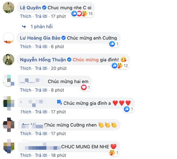 Lệ Quyên, Gia Bảo, Nguyễn Hồng Thuật và rất nhiều khán giả đã liên tục gửi những lời chúc tốt đẹp nhất tới vợ chồng Cường Đô La.