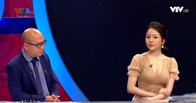 Mặc chiếc váy xẻ sâu gợi cảm, cô nàng hot girl gây chú ý khi cùng các chuyên gia bình luận về bóng đá. Tuy nhiên, ngay sau khi phát sóng, nhiều khán giả cho rằng sự xuất hiện của cô khá nhạt nhẽo và vô duyên.