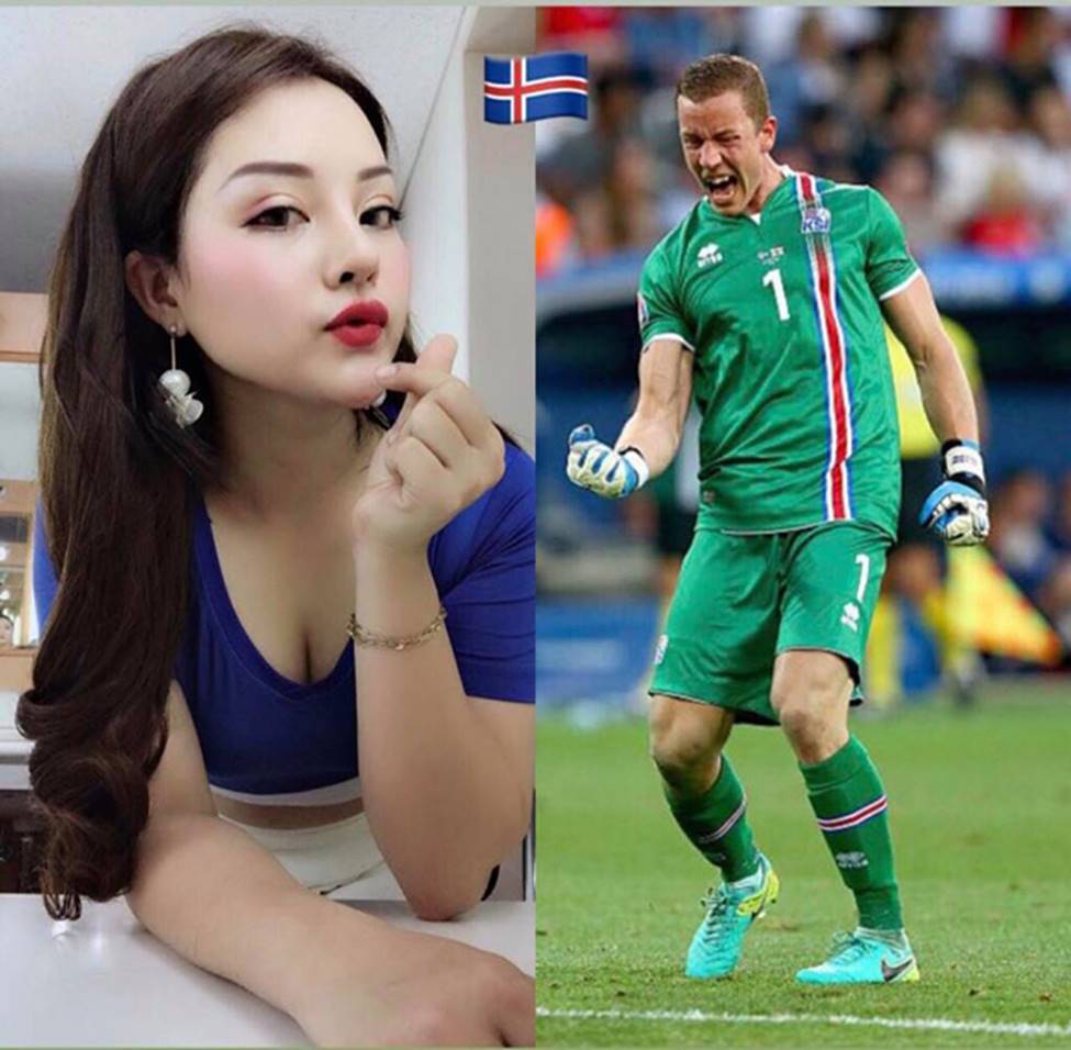Trà My, nổi tiếng từ serie phim hài "Kem xôi" ủng hộ Iceland, đội tuyển từng cầm hòa được Argentina tại World Cup năm nay.