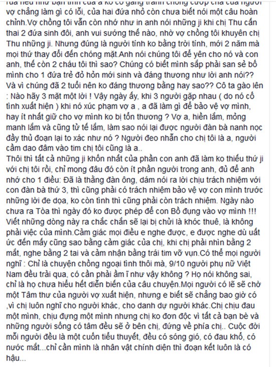 Viết những dòng này ra chắc chắn sẽ lại bị chửi là khóc thuê, là không phải việc của mình. Cảm giác mọi điều em nghe được, em được nghe dù uất ức đến mấy cũng sao bằng cảm giác của chị, khi chị phải nhìn bằng 2 mắt, nghe bằng 2 tai và cảm nhận bằng trái tim vỡ vụn."