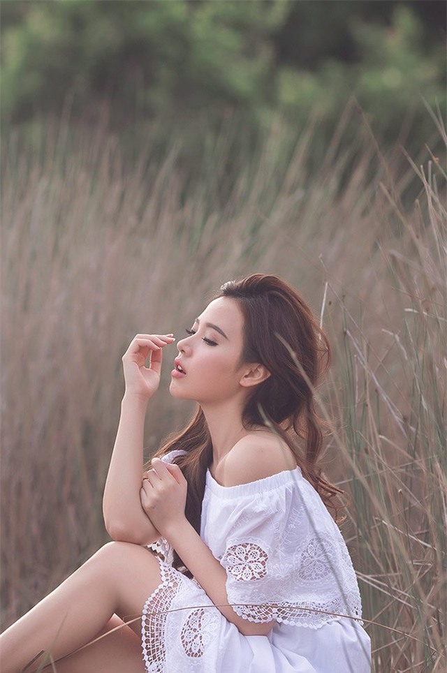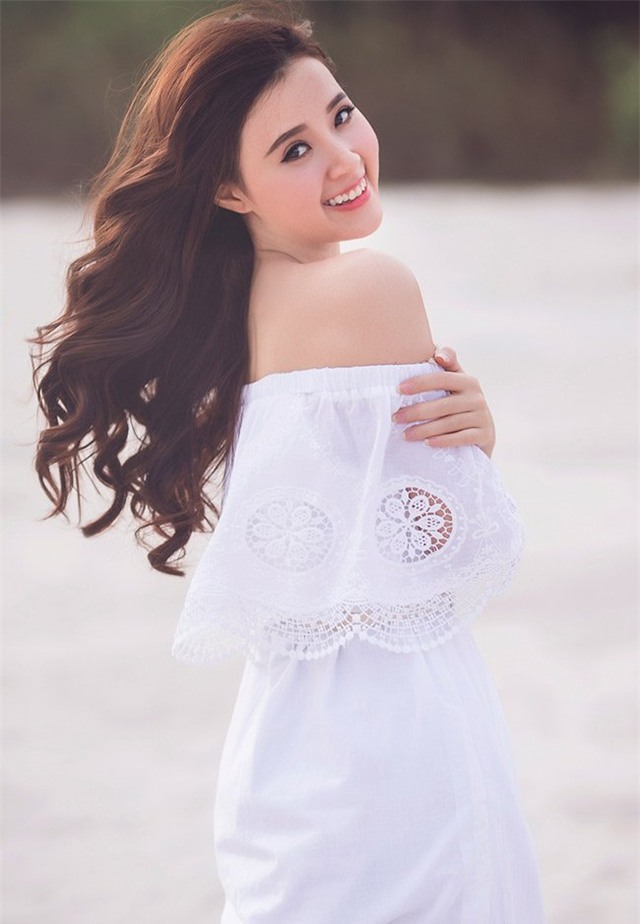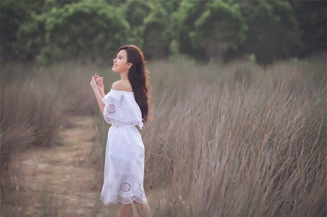 Cô nàng diện bộ váy trắng giản dị, không trang điểm quá cầu kỳ nhưng vẫn toát lên vẻ đẹp trong trẻo, thanh khiết của mình.