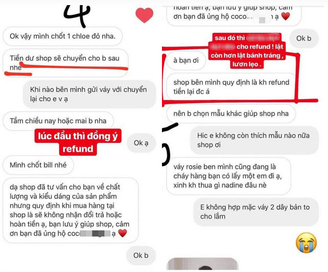 Cụ thể, sự việc này bắt đầu từ việc hot girl Sài Gòn bị tố không trả tiền thừa, vị khách chốt món hàng, chuyển tiền đặt cọc cho cửa hàng và được thông báo shop sẽ trả lại số dư. Tuy nhiên, khi hết hàng, thay vì chọn hướng trả lại tiền đã cọc cho "thượng đế", shop này kiên quyết không chịu và yêu cầu khách chọn món khác để bù.