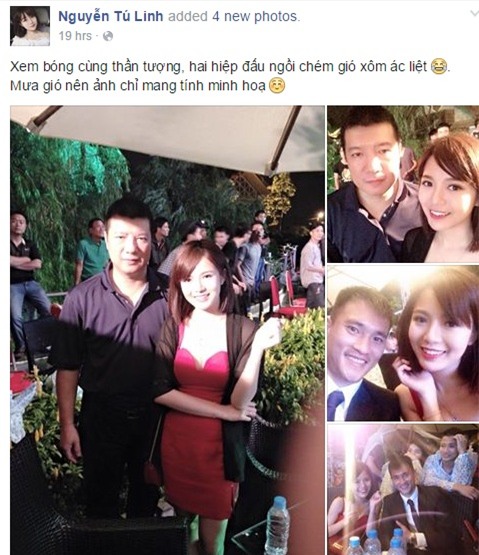 Trên facebook cá nhân, ngay sau buổi Gala sôi động, Tú Linh đã chia sẻ những tấm hình chụp chung với Công Vinh và BLV Quang Huy kèm theo dòng status: "Xem bóng đá cùng thần tượng...".