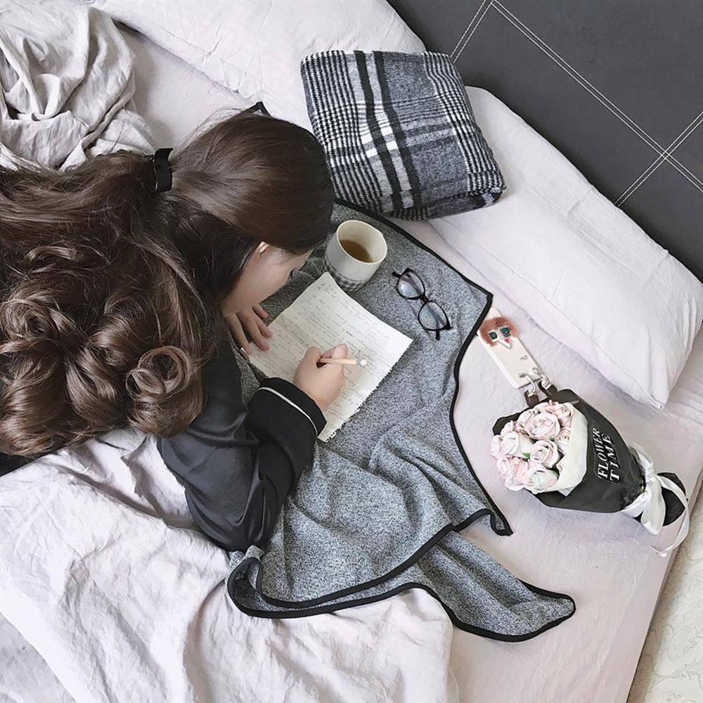 Đơn giản nhất vẫn là ngủ nướng, bày chút đồ trang trí để "sống ảo". Nhưng quan trọng vẫn là cảm giác được ngủ mà không phải lo tiếng chuông báo thức. Hãy tận hưởng ngày cuối tuần để chuẩn bị đón tuần mới tràn năng lượng. Ảnh: lyphan__.