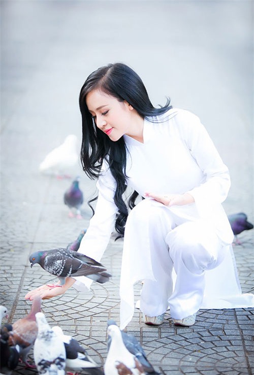 "Bà Tưng" Huyền Anh - người được mệnh danh là "hot girl thả rông" cũng khiến nhiều người bất ngờ với vẻ đẹp thuần khiết, khác lạ khi diện áo dài trắng. |