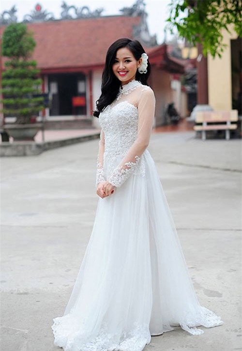 Huyền Anh đẹp trong trẻo với áo dài truyền thống. |