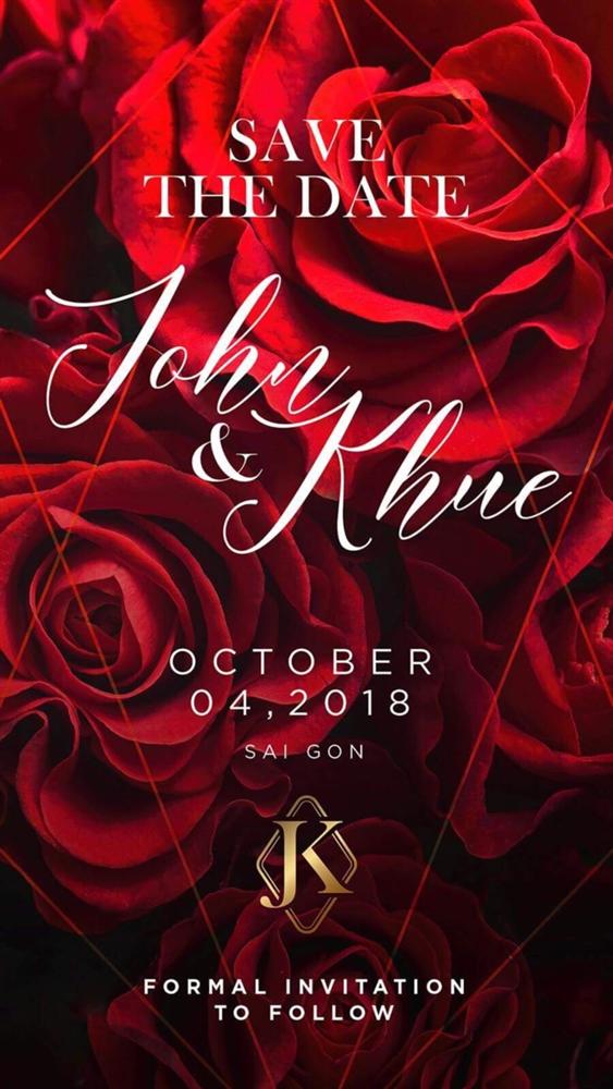 Ở trên thiệp cưới "Save the date" in tên Hoa khôi Áo dài Việt Nam - Lan Khuê cùng ông xã Tuấn John. Trên tấm thiệp ghi rõ ngày giờ tổ chức hôn lễ trùng khớp với ngày mỹ nhân họ Trần sẽ "theo chồng về dinh" được tiết lộ trước đó (4/10/2018).