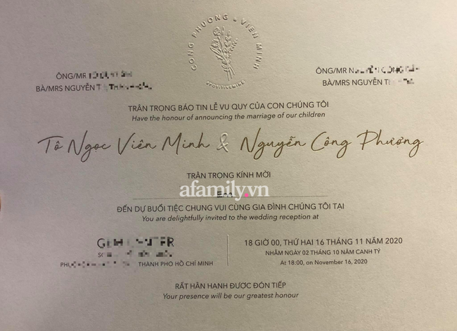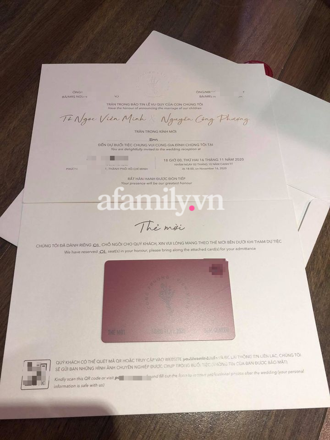 Đặc biệt nhất, độ bảo mật của đám cưới được yêu cầu ở mức rất cao. Công Phượng, Viên Minh ghi rõ ràng trên thiệp mời về số lượng khách: "Chúng tôi đã dành riêng 01 chỗ ngồi cho quý khách". Phải có thẻ từ để quét mã mới được vào trong.