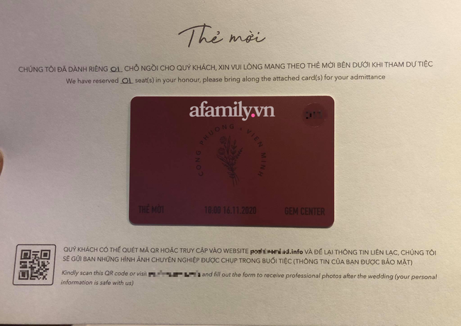 Các khách mời đám cưới cũng được đề nghị quét mã PR hoặc để lại thông tin của mình vào một website, bên ban tổ chức sẽ gửi cho họ những hình ảnh chuyên nghiệp được chụp trong bữa tiệc. Đây là một hành động hết sức chu đáo khi phía Công Phượng còn cam kết sẽ bảo mật thông tin của những vị khách này.