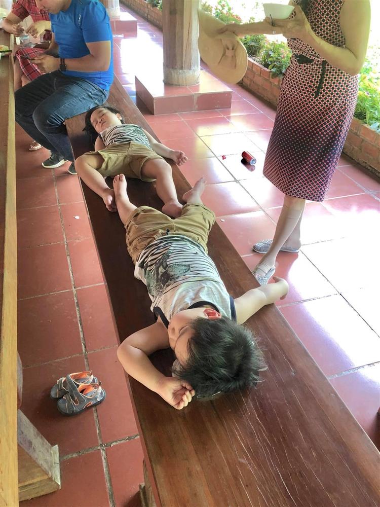 2 cậu nhóc có thể lăn ra ngủ ngon bất chấp địa điểm!