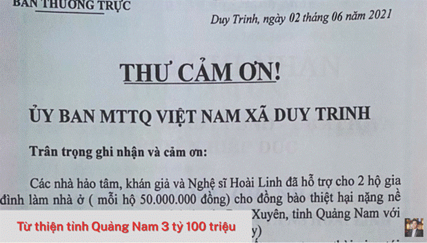 NS Hoài Linh cũng tung đầy đủ mọi sao kê, chứng từ thu chi số tiền mạnh thường quân trên khắp cả nước đóng góp. Nam danh hài cũng nói rõ lý do chuyển khoản đi, các khoãn lãi,... để làm rõ chuyện không biển thủ số tiền từ thiện.