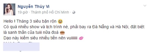 gian gần đây Thúy Vi thường xuyên chia sẻ lịch trình làm việc dày đặc,