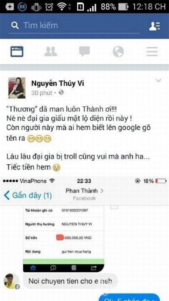 Còn phần Thúy Vi, cô hotgirl 17 tuổi xuất thân từ miền Tây. Cô sinh trưởng trong một gia đình không mấy hạnh phúc. Cô cần tình yêu, cần người quan tâm. Nhưng hơn hết, Thúy Vi cần một người yêu sẵn sàng cung phụng tiền bạc và cả sự nổi tiếng. Gặp và kết bạn với Phan Thành trên facebook là cơ hội ngàn vàng của cô. Có cô gái nào có thể cưỡng lại những chiếc túi hàng hiệu, tài khoản ngân hàng tháng nào cũng lên đến vài chục thậm chí vài trăm triệu... Ngay khi kết thân với Phan Thành, Thúy Vi đã biết anh có vợ sắp cưới nổi tiếng là Midu. Những thỏa thuận của Phan Thành và Thúy Vi giúp cả hai vui vẻ, hài lòng và yên tâm tận hưởng. Thế nhưng, có ai ngờ, khi lòng tham và sự khát khao nổi tiếng của “con mồi” vượt trên sức tưởng tượng của “bác thợ săn”. Ngay lập tức, bản thỏa thuận ngầm trở nên vô hiệu, những đòi hỏi không được thỏa mãn thì chuyện “ăn không được phá cho hôi” cũng dễ hiểu.