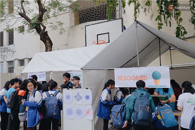 Bên cạnh khu trưng bày, hội chợ còn có khu trải nghiệm sản phẩm VR và Hologram, khu Mini Hackathon, khu đổi đồ ăn và đồ uống... Nếu bạn là một tín đồ mê "sống ảo" thì bạn có thể lựa chọn khu check-in của hội chợ để chụp choẹt cho đã. Không thể không kể đến những tiết mục cây nhà lá vườn cực kì đặc sắc đến từ các bạn học sinh đã đốt nóng không khí hội chợ hơn bao giờ hết.