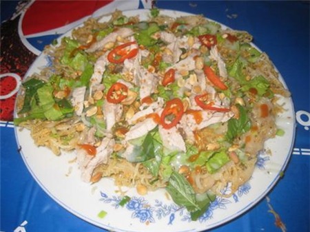 Miếng hủ tiếu chiên giòn.