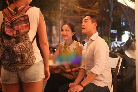Chàng người mẫu, diễn viên đã có buổi tối rất vui vẻ bên "bạn gái" là diễn viên Minh Khuê.