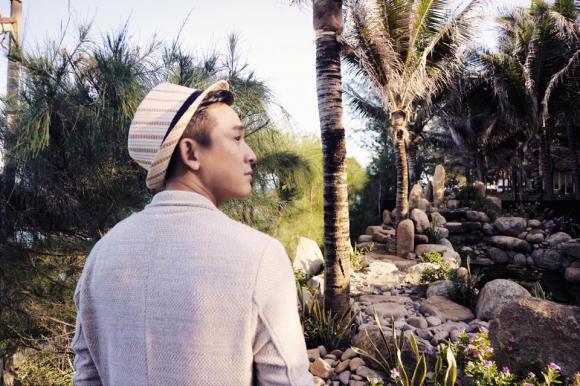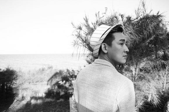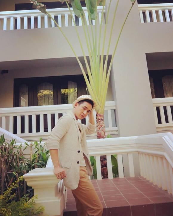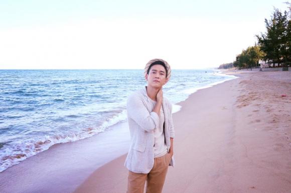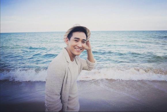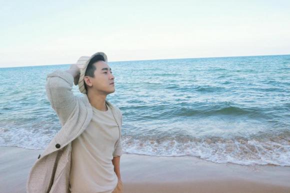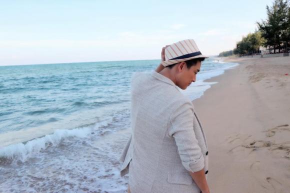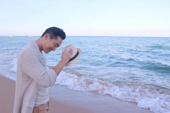 Hứa Vĩ Văn cười rạng rỡ khi đi dạo trên bãi biển.