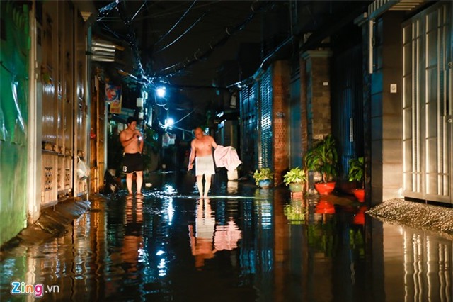 Nhiều con hẻm ở khu vực lân cận cũng chung tình trạng lội bì bõm giữa đêm. |