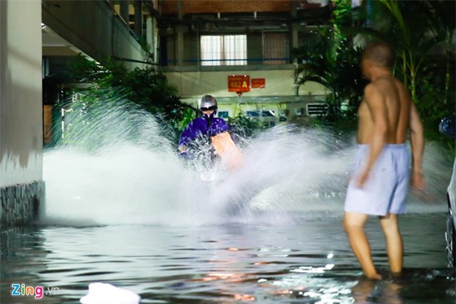 Trận mưa còn làm nhiều khu vực khác ở quận Bình Thạnh như chung cư 482A Nơ Trang Long, phường 13 cũng bị ngập. |