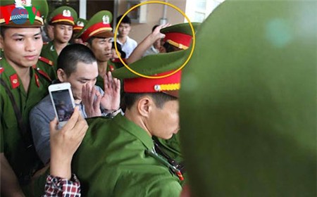 Một người dân giơ tay tát Lý Nguyễn Chung trong phiên xử ngày 29/9/2014 |