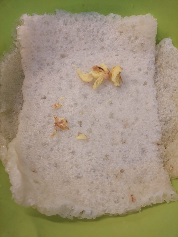 - Mang bóng bì ngâm trong nước vo gạo đến khi mềm rồi rửa sạch. Bạn có thể ngâm nước thường, tuy nhiên nước gạo sẽ giúp bóng mềm, nở nhanh hơn. Sau đó, lại bóp bóng bì với rượu trắng và gừng đập dập để loại bỏ mùi hôi. Làm như vậy không những giúp bóng bì thơm và còn có màu đẹp hơn khi nấu canh. Xả lại với nước nhiều lần và vắt khô.