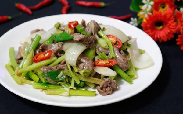 Ngoài kết hợp thịt bò với hành tây thì cũng có thế thay thế bằng cần tây nếu thích. Cách xào thịt với cần tây cũng tương tự như trên. Thịt bò sau khi được xào săn lại trong chảo dầu với tỏi phi thơm thì cho cần tây vào đảo đều.